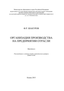 ББК 65.9 я 7 УДК 658 Ш 12 Рецензенты : кандидат экономических наук , доцент Джано Джомаа ( Нижнекамский филиал Института экономики , управления и права ); кандидат экономических наук , доцент А . Н . Дырдонова ( Нижнекамский химико - технологический институт ( филиал ) ФГБОУ ВПО « Казанский национальный исследовательский технологический университет ») Шакуров , Ф . Р . Ш 12 Организация производства на предприятии отрасли : прак - тикум / Ф . Р . Шакуров . – Казань . – Изд - во Казан . гос . техн . ун - та , 2015. – 80 с . ISBN Предназначен для студентов по специальности « Экономика и управ - ление на предприятии », изучающих в соответствии с государственным образовательным стандартом и учебным планом вуза учебную дисцип - лину « Организация производства на предприятиях отрасли ». Отдельные тестовые темы можно использовать по смежным дисци - плинам как « Управление производством », « Организация и планирова - ние производства » для других специальностей . ББК 65.9 я 7 УДК 658 ISBN © Ф . Р . Шакуров , 2015 © Изд - во Казан . гос . техн . ун - та , 2015