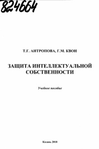 АНТРОПОВА Татьяна Геннадьевна КВОН Гульнара Магсумовна з а щ и т а и н т е л л е к т у а л ь н о й с о б с т в е н н о с т и Учебное пособие Редактор Л.М. Самуйлина Компьютерная верстка - А. А. Золина Подписано в печать 31.10.18. Формат 60x84 1/16. Бумага офсетная. Печать цифровая. Усл.печ.л. 8,37. Тираж 50 экз. Заказ В72. Издательство КНИГУ-КАИ 420111, Казань, К. Маркса, 10 978-5-7579-2338-3 9 7 8 5 7 5 7 9 2 3 3 8 3